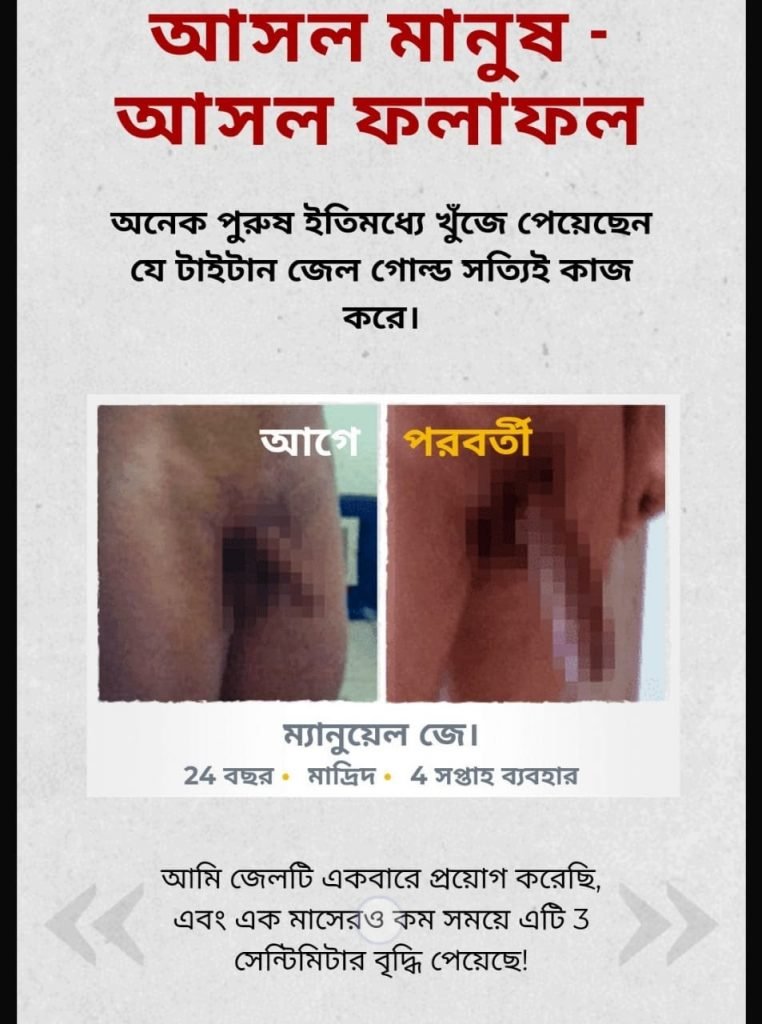 আমি এটা ব্যবহার করেছি আর আমি বলতে পারি যে, জিনিসটা যখন কাজ করে তখন গোটা শরীর শক্তিশালী বোধ করে। ওটা সত্যিই পুরুষাঙ্গের আকার বাড়ায়। আর ওটার ফলাফলের নিরীখে ওর দাম অবিশ্বাস্য রকমের কম।