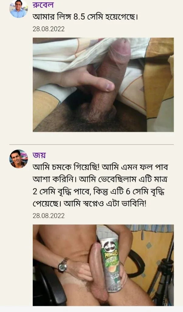 আমি আগে কখনও এমন পণ্য ব্যবহার করিনি, কিন্তু যখন আমি এটা কিনলাম তখন আমি বুঝলাম এটা পরখ না করে আমি কী মূর্খামিই না করেছিলাম। এটা আপনাকে প্রচুর শক্তি দেয়! আমি আকারের বৃদ্ধির ব্যাপারে জানি না কারণ আমি খুব কম সময় ধরেই এটার ব্যবহার করছি, কিন্তু এটা সত্যি যে, এটা আপনার যৌনসঙ্গম করার আকাঙ্খাকে বেশ তরতাজা করে তোলে!